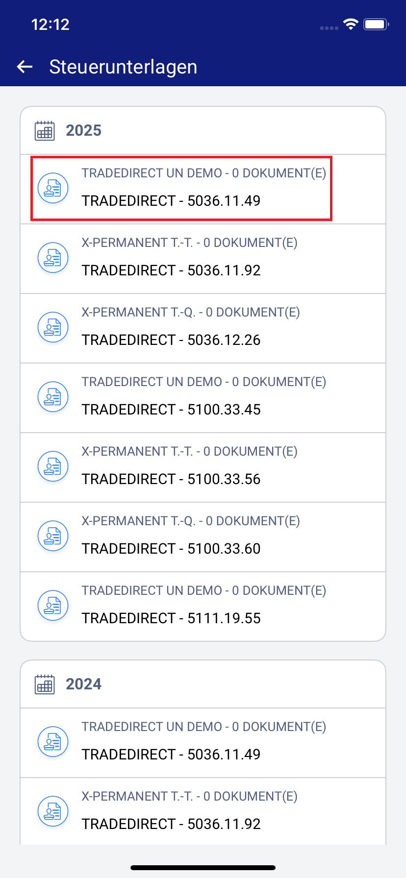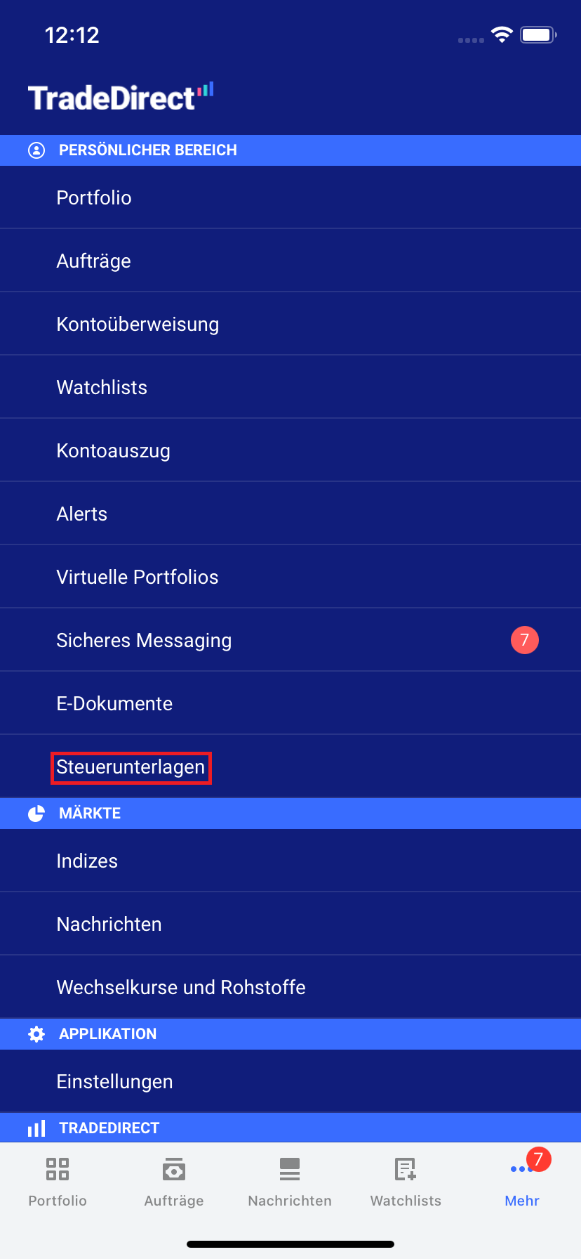 Wie kann ich in der TradeDirect-App einen Steuerauszug bestellen?