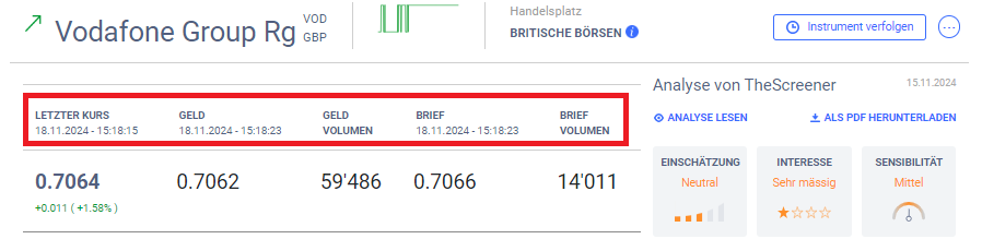 Bitte beachten Sie Folgendes beim Handel an den US- und kanadischen Börsen sowie der britischen und der portugiesischen Börse: Bei allen Zeitangaben in der Ansicht der Titel, z. B. beim letzten Aktienkurs, handelt es sich, sofern nicht anders angegeben, ab jetzt um die mitteleuropäische Zeit und nicht mehr um die jeweilige Ortszeit.